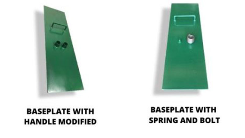 The baseplate is available in a spring-mount version that allows the fence to flex upon impact, or in moderately high winds.